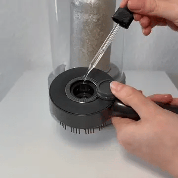 Llena el depósito con 2–3 pipetas de aceite capilar. Durante el uso, Kibou libera el aceite de forma automática al contacto con el cuero cabelludo para una distribución uniforme.