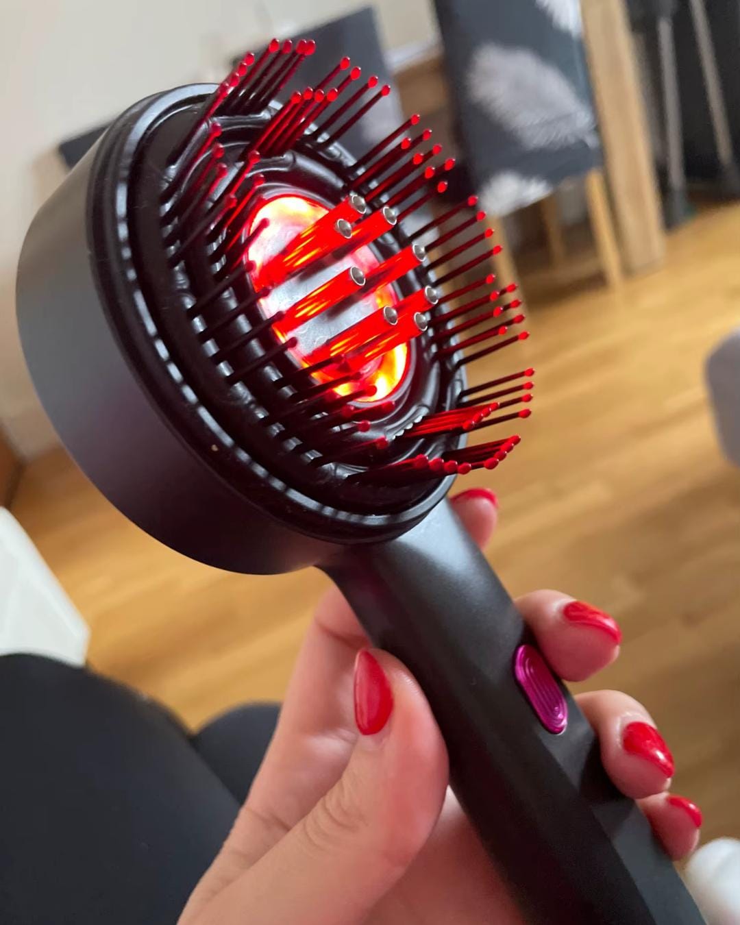 Probé muchos productos contra la caída del cabello, pero nada funcionó hasta que descubrí este cepilo. Después de unas semanas vi pelitos nuevos y mi cabello se siente más fuerte.La masaje relaja mucho, la luz roja estimula el cuero cabelludo y el aceite se absorbe sin dejar las manos pegajosas. Estoy feliz con los resultados!